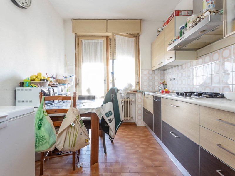 L'appartamento è posto al secondo piano di palazzina dotata di ascensore. Il disimpegno di ingresso accoglie in un ampio soggiorno con cucina vivibile e separata.