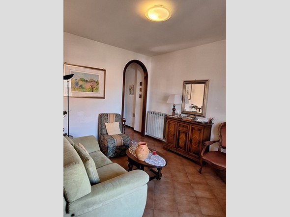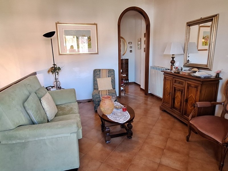 MONTEAPERTI VENDESI PER NOSTRA ESCLUSIVA Appartamento con ingresso indipendente e doppio giardino al piano terra rialzato e composto da: ingresso/disimpegno con angolo cottura e terrazzo, disimpegno, camera matrimoniale con terrazzo e bagno finestrato. Scala interna di collegamento con il piano seminterratto in cui si sviluppano 2 grandi locali accessori multiuso, piccola cantina, lavanderia e accesso diretto al giardino sul retro con affaccio sulla campagna. Annesso ampioa garage privato di circa mq. 25.