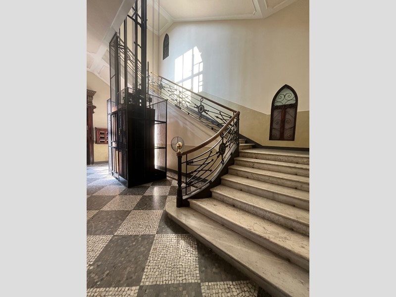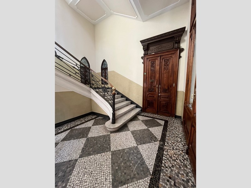 Nel cuore della città, all’interno di un elegante stabile d’epoca con servizio di portineria e splendidi mosaici in marmo sui pianerottoli, proponiamo in vendita un affascinante appartamento angolare situato al quarto ed ultimo piano con ascensore.