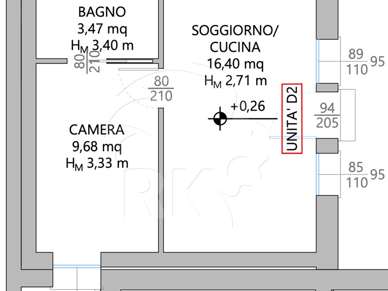 SOLUZIONE NR. D2 - BILOCALE (UNICO LIVELLO - PIANO TERRA) - Accesso all'unità al piano terra, ingresso su soggiorno con angolo cottura, una camera matrimoniale e bagno.