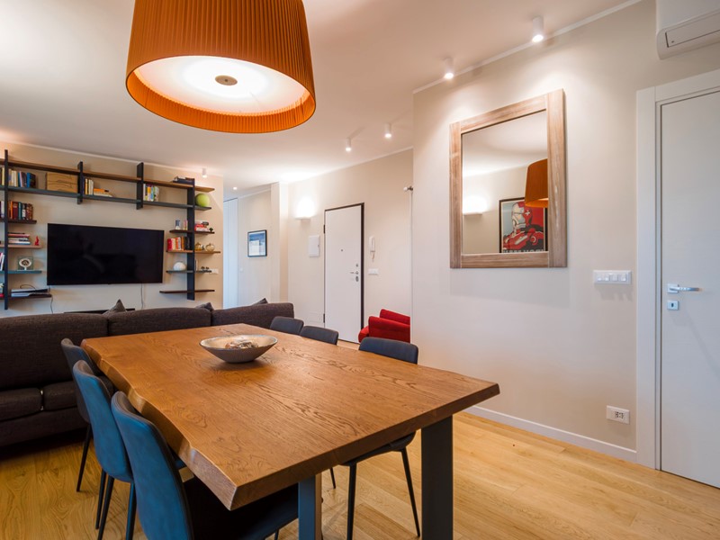 L’appartamento è stato integralmente ristrutturato a nuovo nel 2025 con materiali di pregio (parquet in tutte le aree ad eccezione della cucina) ed è dotato di impianti elettrici e idraulici nuovi e certificati nonché cablaggio LAN / Internet di tutti i locali. Sono inoltre presenti infissi con doppi vetri, porte interne di qualità (Dierre), portoncino blindato, citofono e climatizzatori Samsung trial split e mono split, tutti nuovi e coperti da garanzia. È possibile acquistare separatamente anche l’arredo e/o l’illuminazione, anch’essi nuovi e regolarmente fatturati.