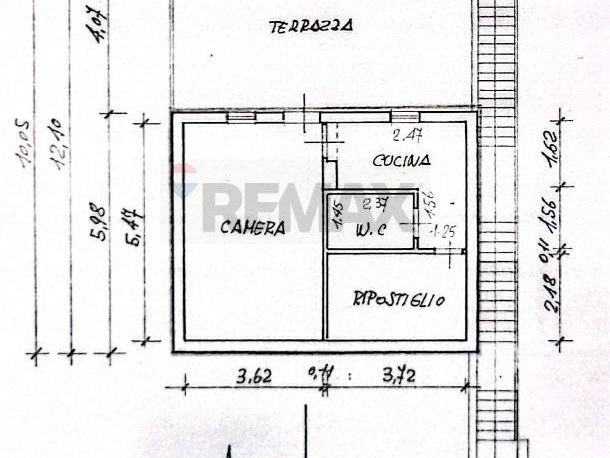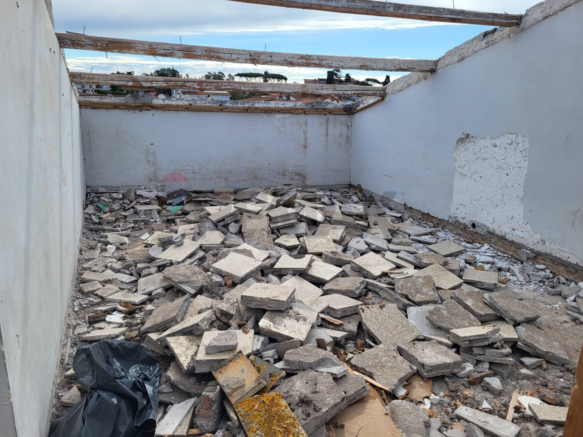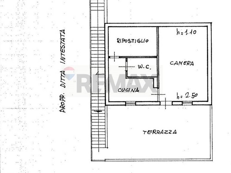 La proprietà sta iniziando la totale ristrutturazione sia interna che esterna, al momento l'immobile è come da vecchia planimetria che è composto da una camera, cucina, ripostiglio, bagno e 30 mq. di terrazzo.