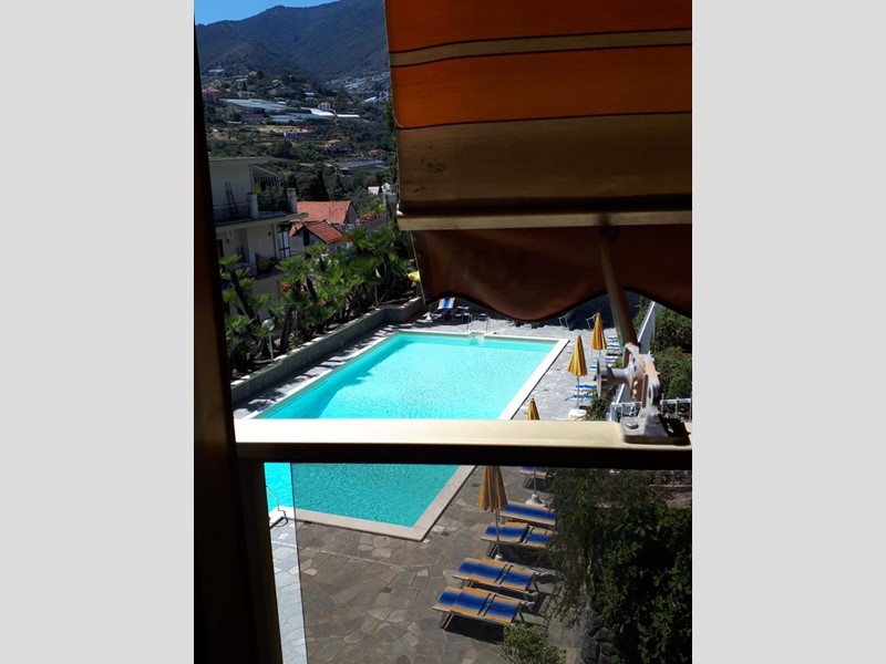 L'appartamento è arredato e dispone di un balcone dalla quale è possibile godere di una bellissima vista sulla città e sulla piscina sottostante godibile dai residenti.