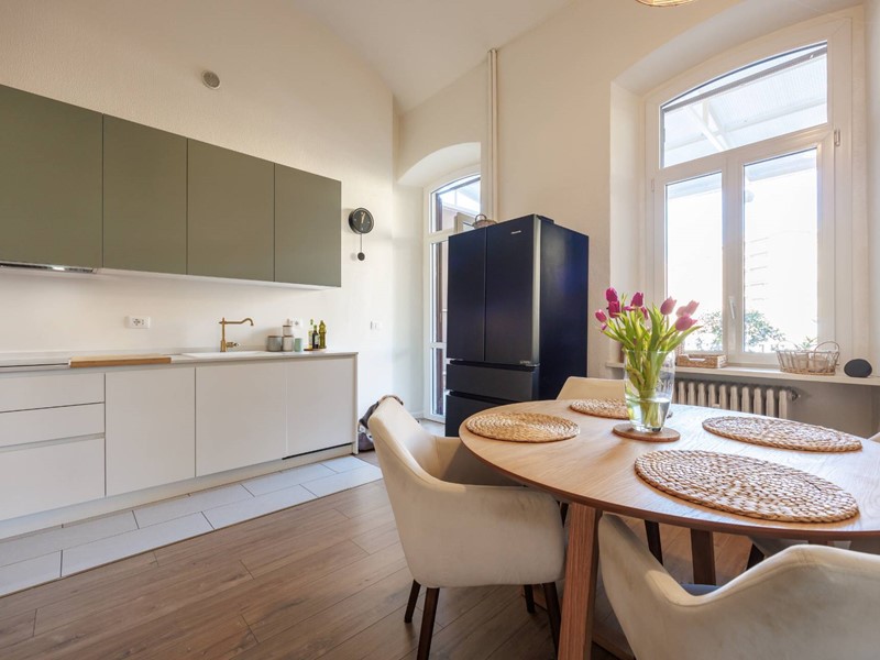 L'appartamento è stato completamente ristrutturato a nuovo nel 2022, con scelta di materiali di pregio, è così composto: