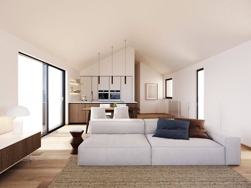 Limmobile, di circa 155 mq, soleggiato e silenzioso, circondato da un doppio giardino esclusivo di 350 mq, ampio e pianeggiante, perfettamente integrato con la zona living e le camere grazie alla doppia esposizione.