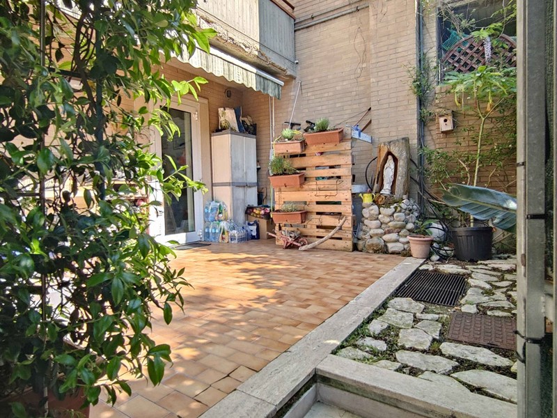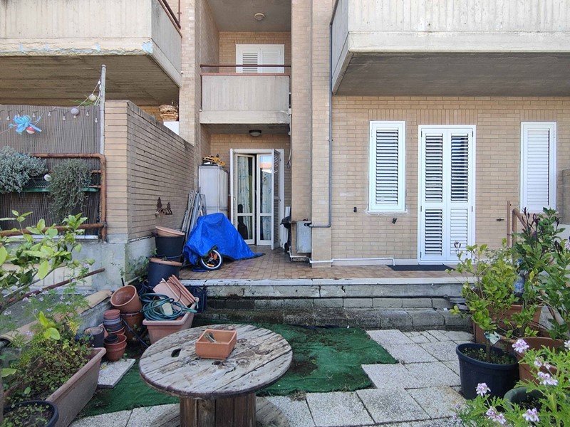 Appartamento con ingresso indipendente, in vendita in territorio di Acquaviva Picena, a ridosso del confine con il comune di San Benedetto del Tronto, posto al piano terra di un piccolo condominio, delle dimensioni di circa mq 60 coperti oltre a due corti/giardino di circa mq 70, un comodo fondaco di circa mq 7 ed un garage di circa mq 17.