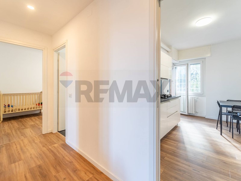 Completamente ristrutturato nel 2024 con materiali di pregio e grande attenzione ai dettagli, lappartamento accoglie con un luminoso ingresso soggiorno, uno spazio arioso e armonioso che si apre su un primo balcone verandato, perfetto come zona relax o ulteriore ambiente living da vivere tutto lanno. La cucina abitabile firmata Stosa, moderna e funzionale, è pensata per coniugare estetica e comfort e dispone delluscita sul secondo balcone, condiviso con la camera matrimoniale, ampia e accogliente.