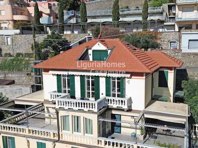 Attico di prestigio in vendita ad Alassio si trova nella rinomata zona di Via Solva con spettacolare vista mare, inserito allinterno di una villa storica in un contesto signorile, circondato da un elegante giardino terrazzato.