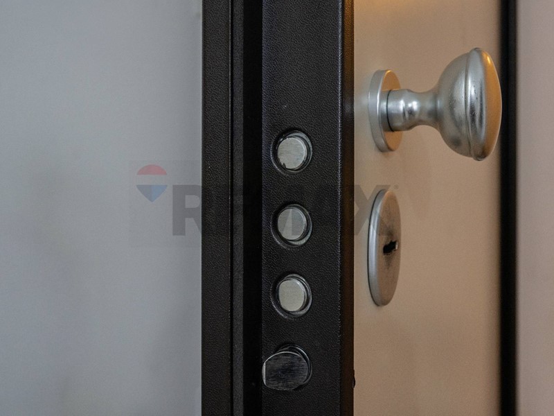 - Portoncino d'ingresso blindato con chiusura di sicurezza e spioncino.