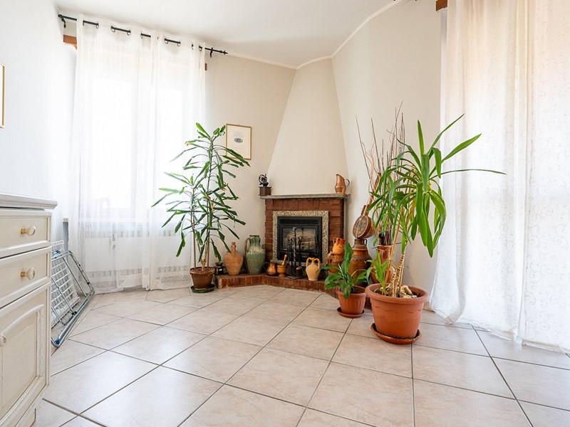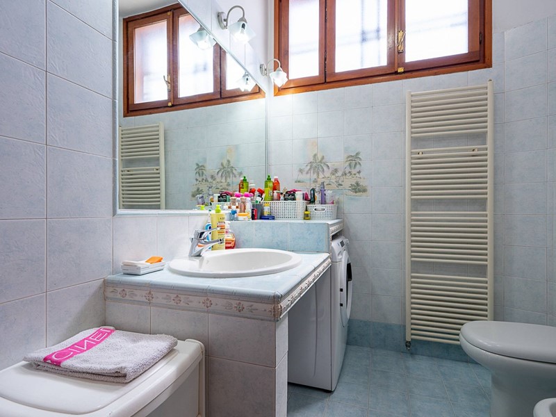 L'ingresso si apre su un luminoso e ampio soggiorno con camino, che gode di una bella vista grazie ad un terrazzo. La cucina è abitabile. La zona notte, ben separata dalla zona giorno, è composta da quattro camere da letto e due bagni, uno con vasca da bagno e uno con comoda doccia, entrambi finestrati.