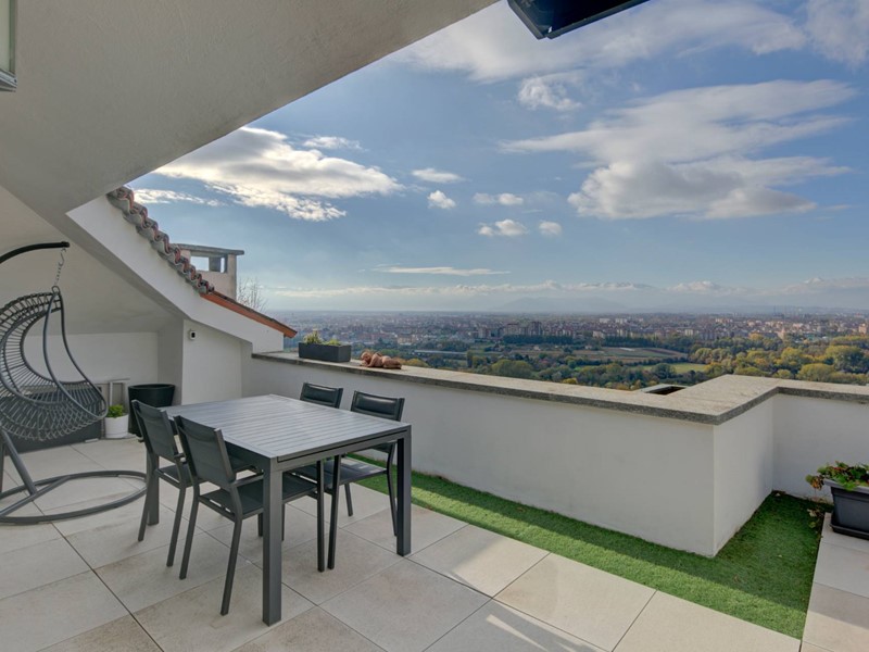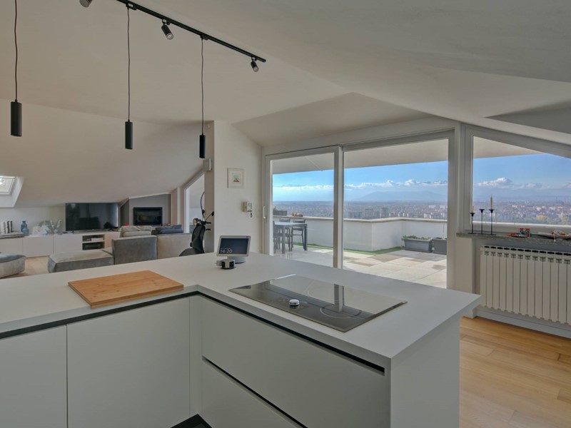 Precollina, nei pressi di Cavoretto, elegante super attico, finemente ristrutturato, con 65 mq di terrazzo, giardino comune, box triplo e riscaldamento autonomo. Moncalieri, viale del Parco, prestigiosissimo, a pochi metri dal meraviglioso Castello di Moncalieri, di oltre 200 mq, completamente ristrutturato nel 2022 con finiture di pregio, al terzo piano di uno stabile signorile con ascensore e terrazzo con vista mozzafiato sulla città e sullarco alpino.