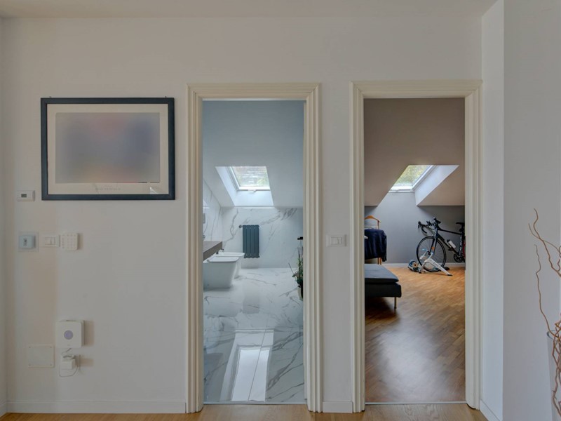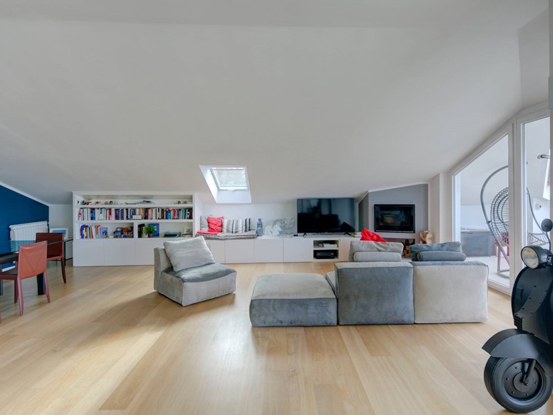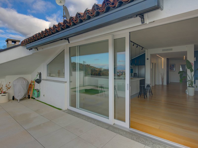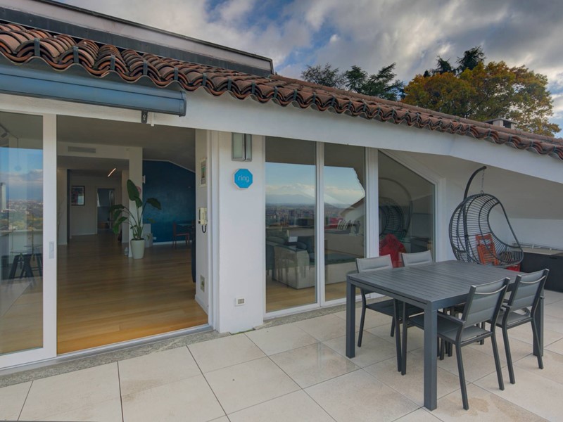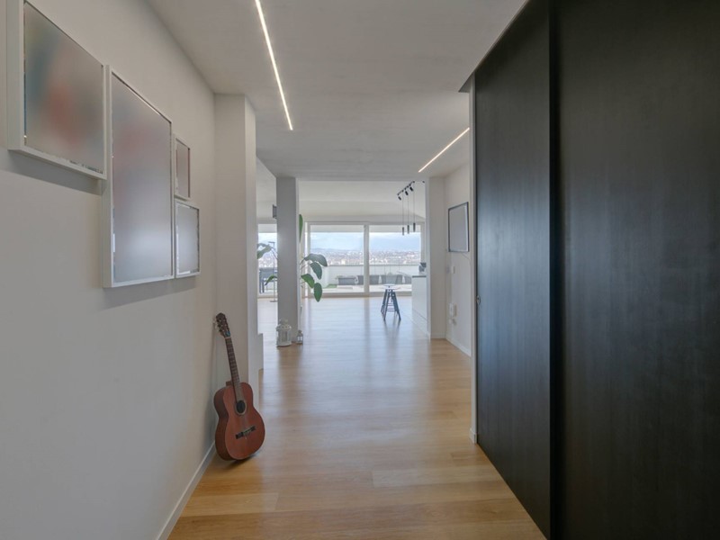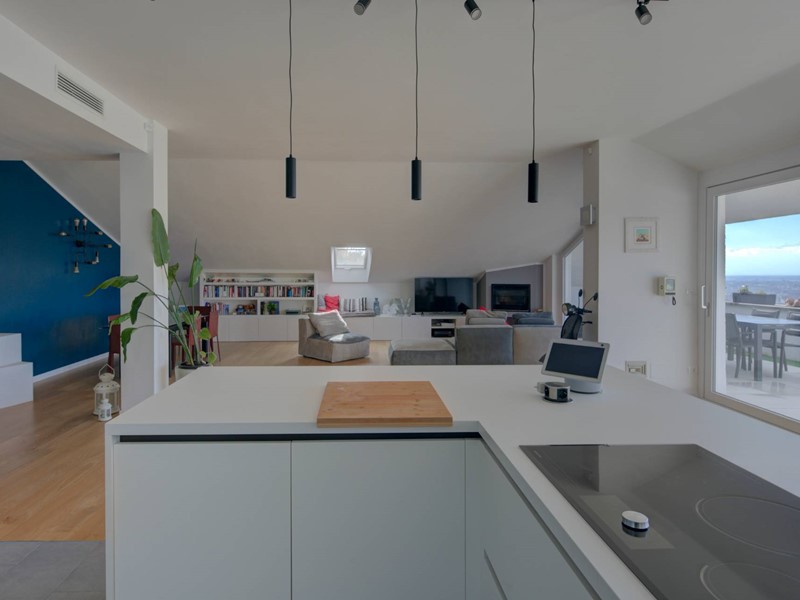 Si compone di doppio ingresso, ampio e luminosissimo soggiorno living con cucina abitabile, circondato da uno splendido terrazzo panoramico di 65 mq, tre camere di generosa metratura e tre bagni, tutti finestrati, di cui uno en suite ed uno ad uso lavanderia. Il riscaldamento è autonomo. Completa la proprietà un box triplo di 63 mq, e un parcheggio condominiale per gli ospiti. La posizione eccezionale, gli spazi esterni, la meravigliosa vista panoramica, l'esposizione perfetta, le finiture di pregio e le ottime condizioni conservative rendono questo attico unico e imperdibile.