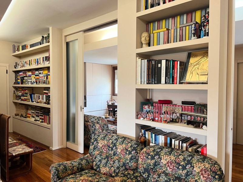 'La zona giorno è concepita per l'ordine e la convivialità: al salone di rappresentanza, si contrappone la più informale zona living costituita dalla cucina abitabile e dall'ampio tinello. Le due aree sono divise da grandi porte scorrevoli a scomparsa, che all'occorenza possono rendere l'ambiente un unico spazio. Il tutto servito da armadiature e librerie a muro perfettamente mimetizzate che massimizzano gli spazi senza appesantirli, al pari della pratica lavanderia nella parte retrostante la cucina.