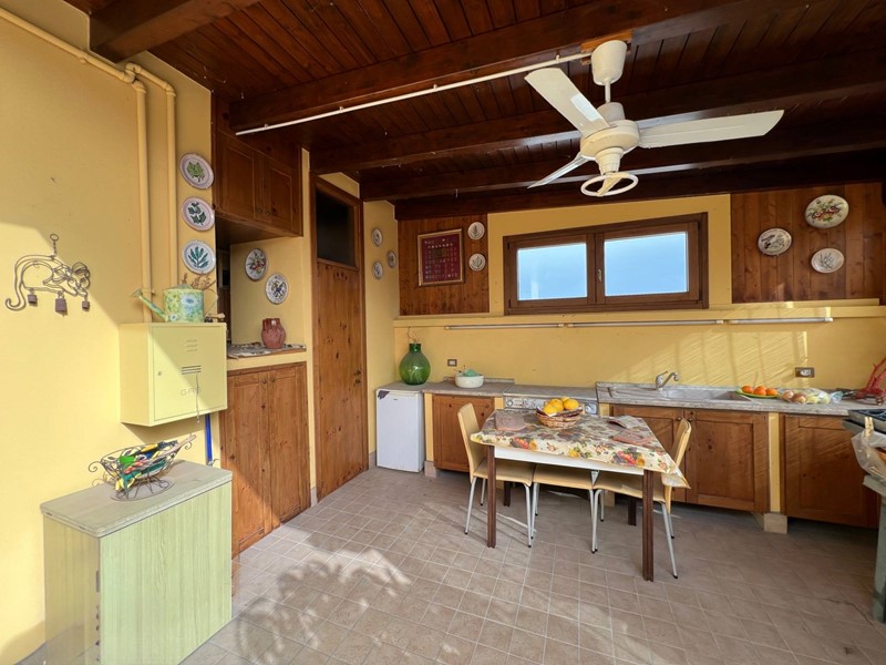 'Il vero valore aggiunto è il terrazzo perimetrale che, grazie all'esposizione su tre lati (Sud-Est-Ovest), regala all'appartamento una luce naturale dall'alba al tramonto. Una parte dello spazio esterno è stata attrezzata con un pergolato in legno e una cucina all'aperto, trasformandolo in un vero living supplementare, completato da comodi ripostigli e tende da sole.