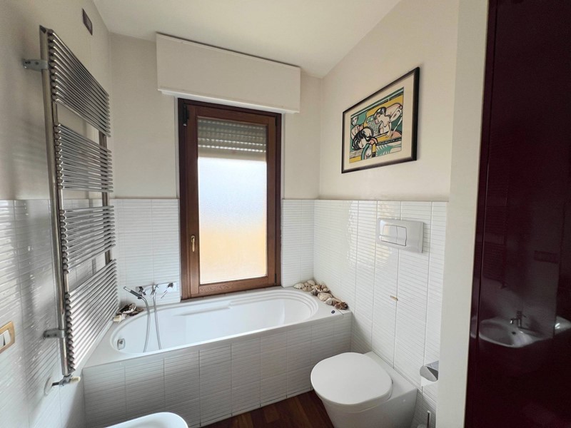 Con una superficie di oltre 150 mq, la casa è stata completamente ristrutturata nel 2004 con scelte di pregio come il parquet in ogni ambiente che mantengono ancora oggi unestetica assolutamente attuale.