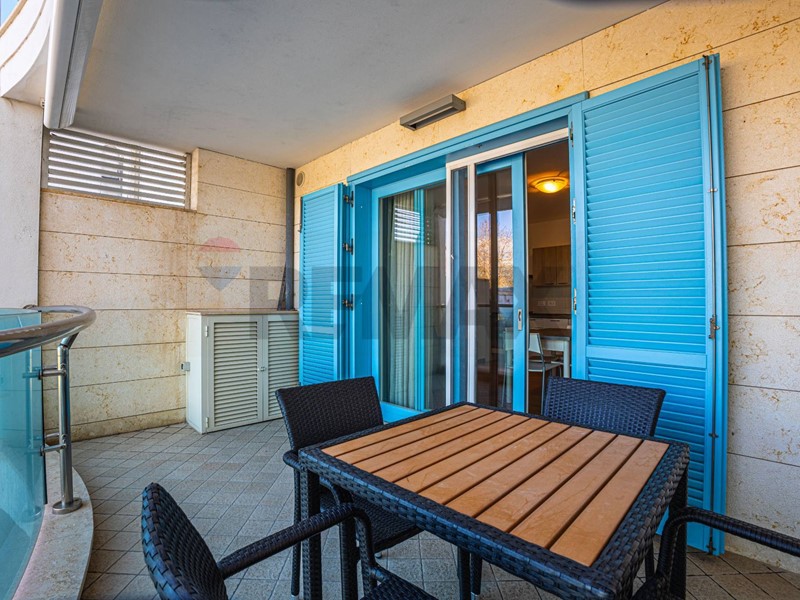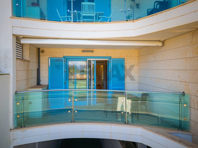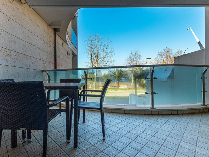 Lingresso si apre su un luminoso soggiorno con cucina a vista e uscita diretta sul terrazzo fronte mare, esposto a Ovest. Questo spazio esterno consente di posizionare comodamente un tavolo con sedie, ideale per cene allaperto, aperitivi al tramonto e momenti di relax con vista sul Golfo di Alghero.