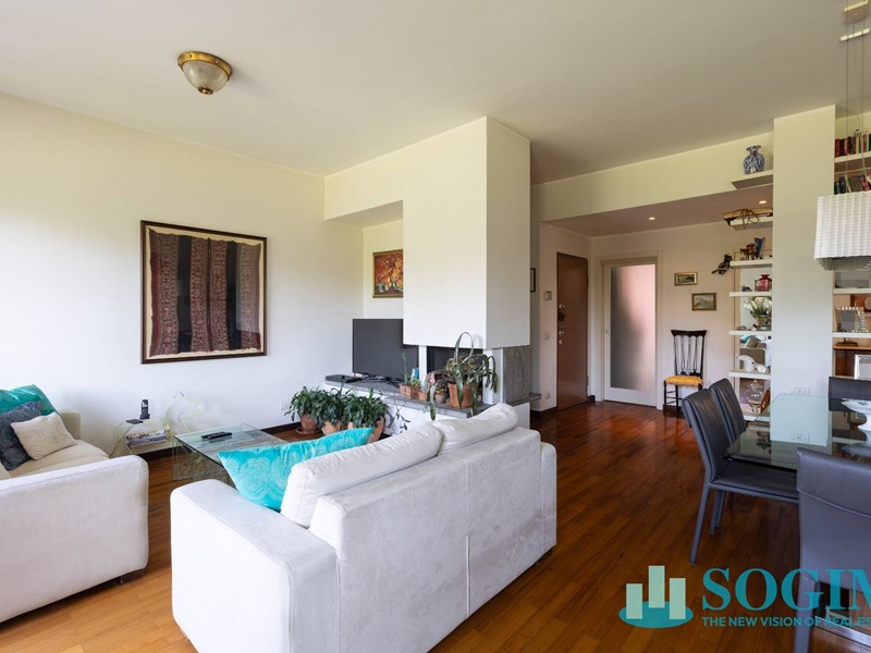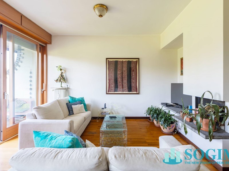 Varcando la soglia, si viene accolti da un grande soggiorno che, grazie alle ampie finestre e allaccesso diretto alla terrazza, regala una splendida luce naturale durante tutto il giorno. La vista è aperta e verde, e trasmette fin da subito una sensazione di tranquillità e riservatezza.
