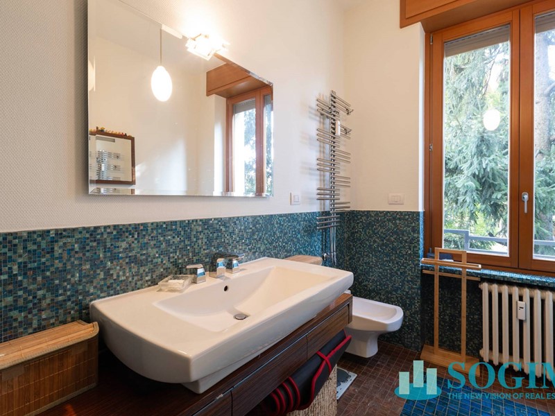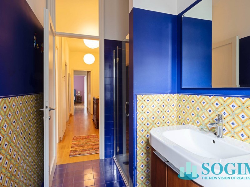 I due bagni, entrambi finestrati, presentano finiture di pregio: uno rifinito con mosaico Bisazza, laltro arricchito da vetri artistici firmati Di Maio.