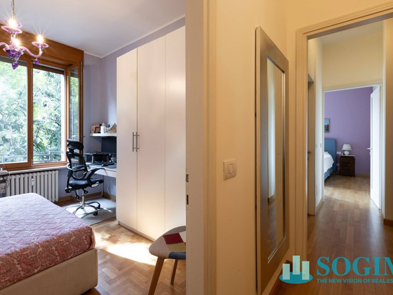 La zona notte si compone di tre camere da letto, tutte ben dimensionate, silenziose e con affacci ariosi. I serramenti in legno massello Douglas e i doppi vetri garantiscono ottimo isolamento termico e acustico. La camera padronale è già dotata di aria condizionata, mentre nel soggiorno, in cucina e nel corridoio è presente la predisposizione. Tutte le pareti esterne dellappartamento sono isolate con sughero insufflato, una soluzione tecnica che conferma la qualità costruttiva dellimmobile.
