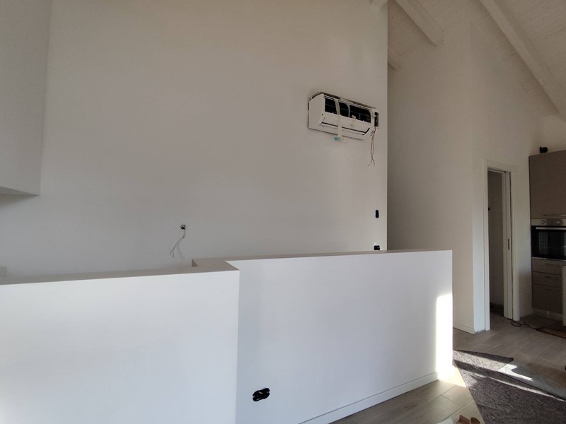 L'appartamento, con ingresso da portoncino blindato, superato un vano scale si apre sull'ambiente giorno ben suddiviso e attualmente in fase di finiture, particolarmente luminoso grazie a porte finestre che consentono l'uscita su un balcone con vista lago.