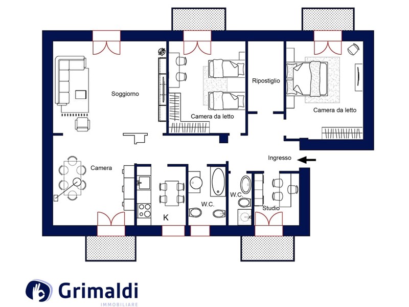 GRIMALDI MUSEO- AGENZIA NAPOLI CENTRO- Propone in vendita appartamento di 120 mq commerciali con quattro balconi, ubicato ad un quinto piano di uno stabile moderno dotato di ascensore e servizio di portierato. L'unità immobiliare è composta da ingresso, salone , cucina, tre camere da letto, cameretta, doppi servizi e ripostiglio. L' immobile si presenta in buono stato di manutenzione, è dotato di riscaldamento autonomo e di impianto di climatizzazione caldo/freddo e gode di una doppia esposizione che lo rende molto luminoso durante l'intero arco della giornata. La proprietà si trova al Vomero ,uno dei quartieri più rinomati della città e più precisamente in Via Francesco Cilea, in un contesto signorile e ben servito da qualsiasi attività commerciale, servizi di prima necessità, scuole e mezzi pubblici.