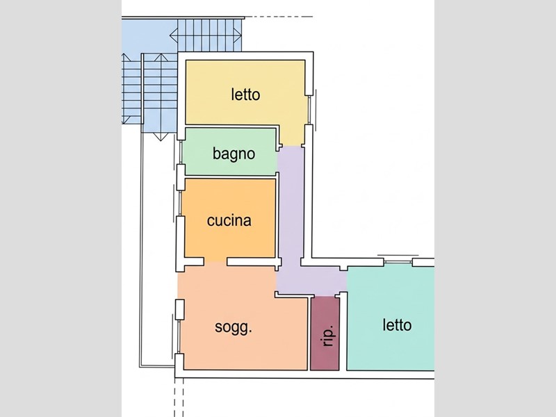 L'accesso all'abitazione avviene tramite una scala esterna di proprietà che conduce a un grazioso terrazzino, spazio che anticipa l'ingresso indipendente. Una volta varcata la soglia, veniamo accolti da un soggiorno luminoso che comunica con una spaziosa cucina abitabile. Un pratico ripostiglio completa la zona giorno. La zona notte si compone di una camera matrimoniale, una camera singola e un bagno.