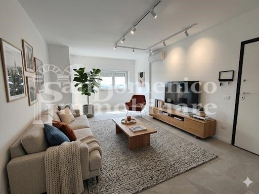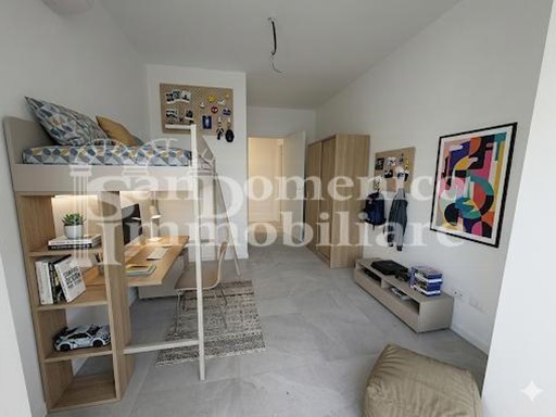 Posto al quinti piano con ascensore di un edificio di nuova costruzione (con la sicurezza della polizza indennitaria decennale postuma), l'immobile si distingue per una distribuzione degli spazi moderna e funzionale, la zona giorno, ingresso in ampio e luminoso soggiorno con angolo cottura a vista, con accesso diretto al balcone vivibile. La zona notte, un disimpegno ben organizzato conduce alla camera matrimoniale con cabina armadio dedicata, a una seconda camera e ai servizi. Il comfort dei servizi, doppi servizi (entrambi con doccia, uno dei quali finestrato) e un praticissimo ripostiglio ad uso lavanderia.