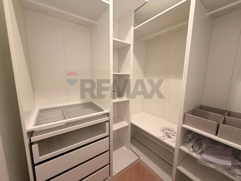 APPARTAMENTO A) Composto da ingresso su soggiorno con cucina a vista e balcone, camera matrimoniale con cabina armadio, ripostiglio e bagno finestrato completo di box doccia e sanitari.