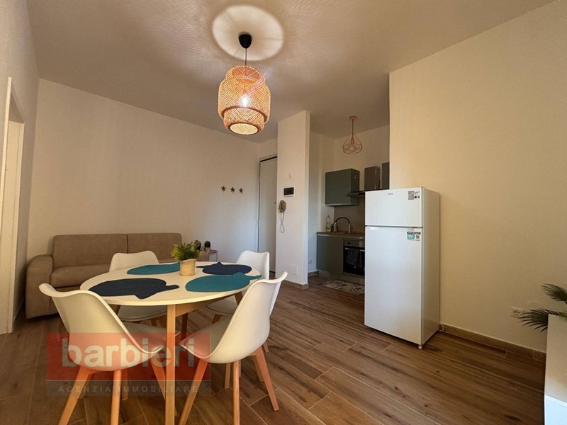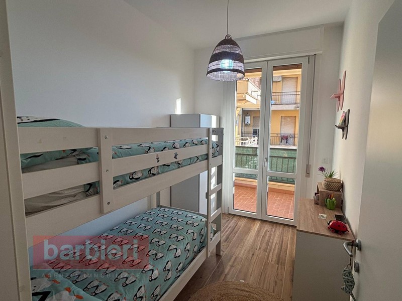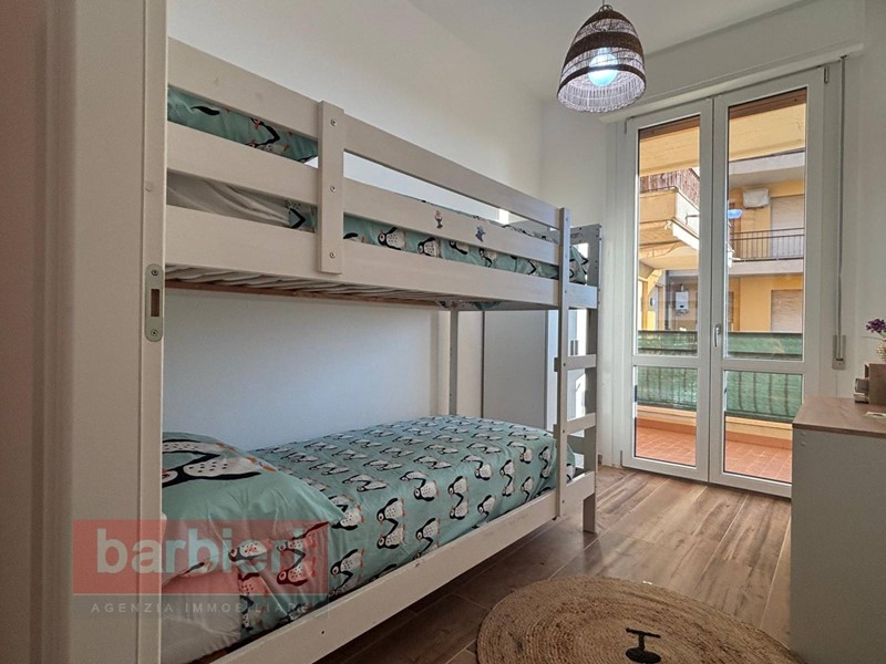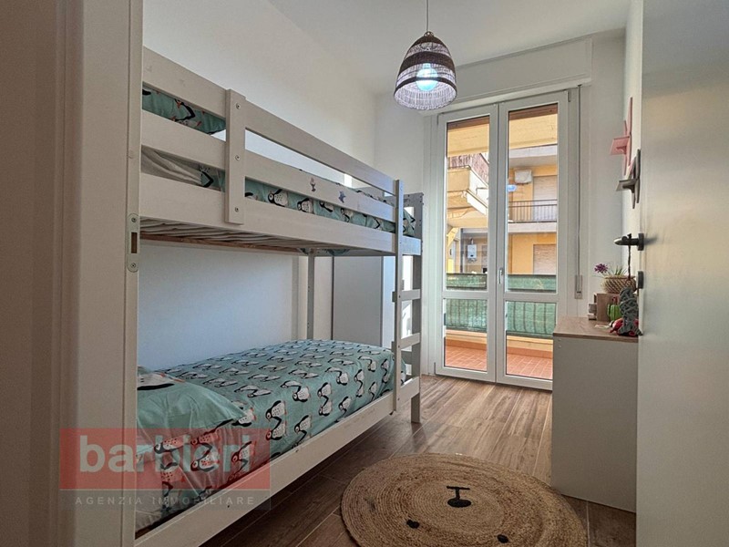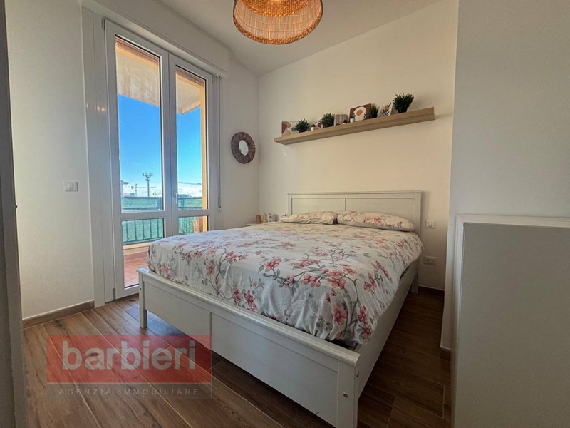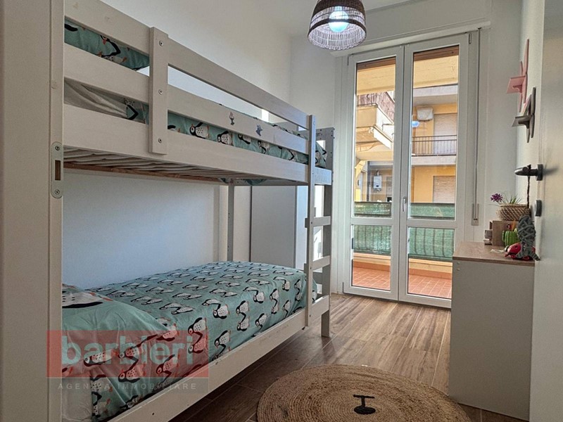 L'immobile, è composto da soggiorno con accesso al terrazzo abitabile, cucina a vista, disimpegno, una camera matrimoniale, una camera singola con letto a castello e bagno finestrato con box doccia. Completano la soluzione il posto auto assegnato.