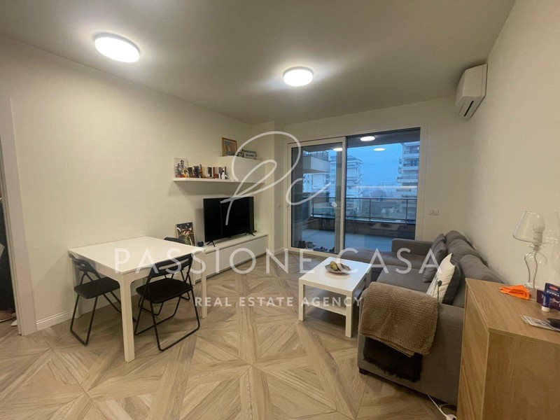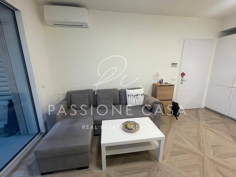 Questo due locali è composto da soggiorno, cucina a vista, disimpegno, camera da letto matrimoniale, bagno e terrazzo.
