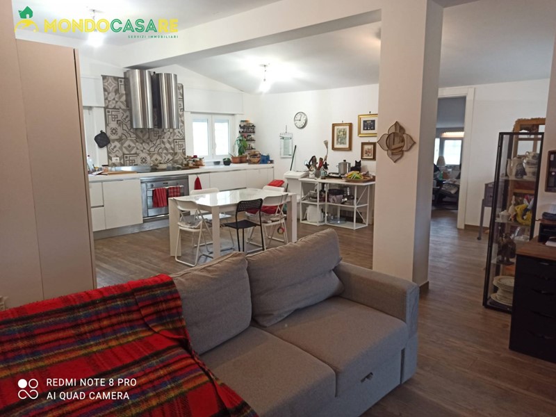 ampio salone con cucina a vista, cuore della casa, da cui si accede allo splendido terrazzo abitabile,