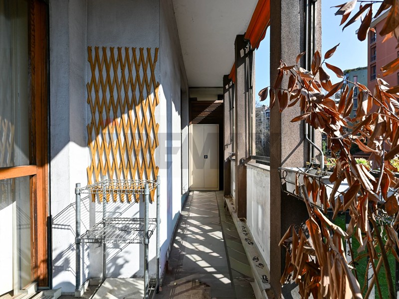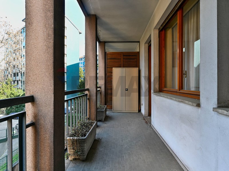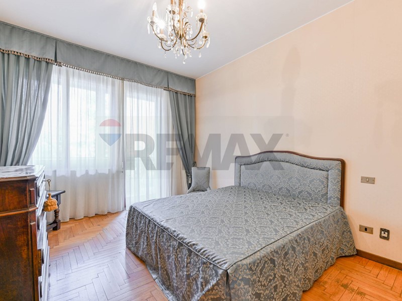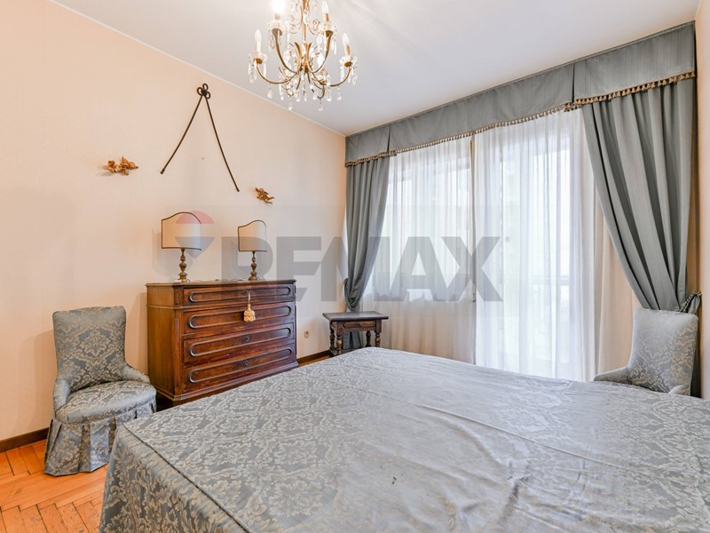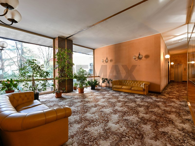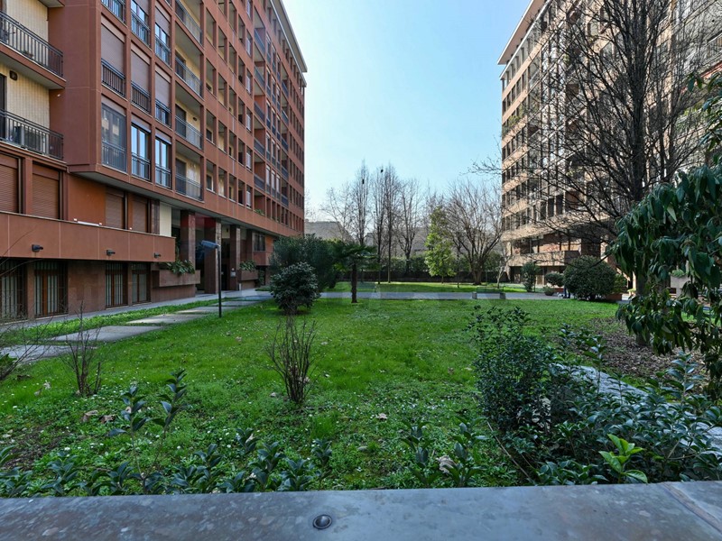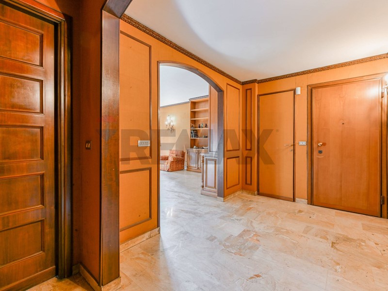 L'appartamento verrà consegnato ristrutturato e semi arredato ed è così composto: salone doppio con accesso al primo grande balcone, due camere da letto matrimoniali, un'altra stanza utilizzabile come terza camera o come studio, cucina abitabile con balcone di servizio, due bagni, comoda cabina armadio sfruttabile anche come lavanderia e un ulteriore ripostiglio adiacente all'ingresso principale. Gli spaziosi balconi affacciano sul giardino condominiale e le ampie finestre rendono l'appartamento molto piacevole, luminoso e silenzioso. La cantina e il box, inclusi nella richiesta, completano la proprietà. E' presente l'aria condizionata, un doppio ingresso. Il riscaldamento è centralizzato a pavimento e il servizio di portineria è presente tutto il giorno.