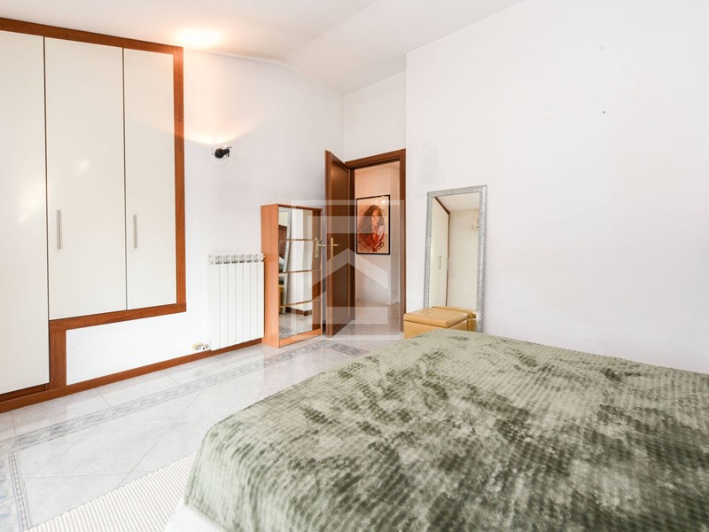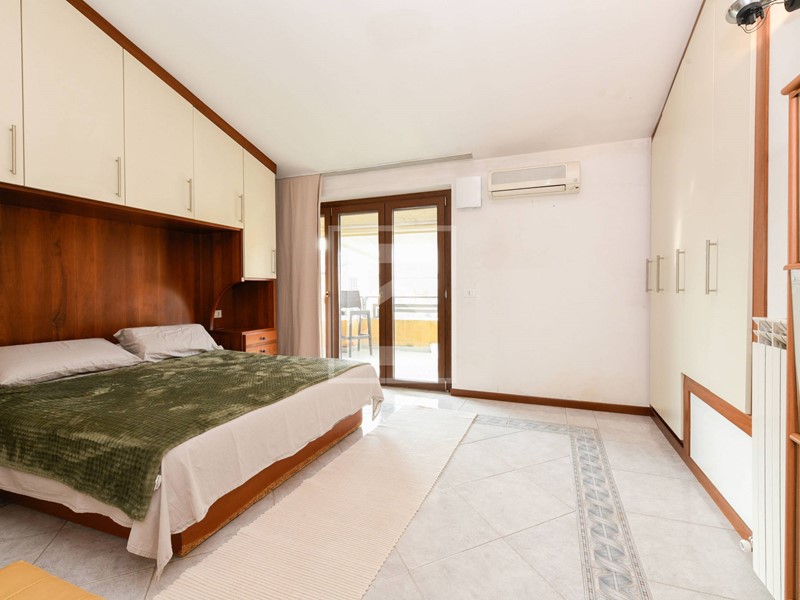 Una spaziosa camera matrimoniale con terrazzo privato e importanti armadiature su misura