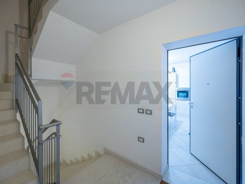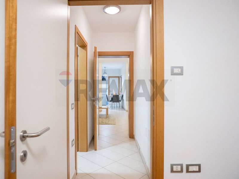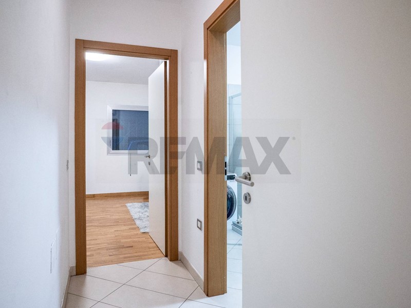 La porta in alluminio scorrevole ci inoltra all'ingresso dell'appartamento.