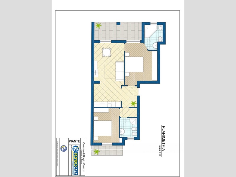 Si compone da un'ampia zona giorno con angolo cottura che si affacciata su una graziosa loggia, due camere da letto, di cui una con un comodo bagno privato, e un bagno principale.