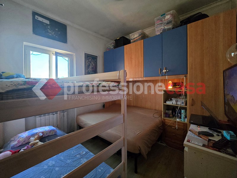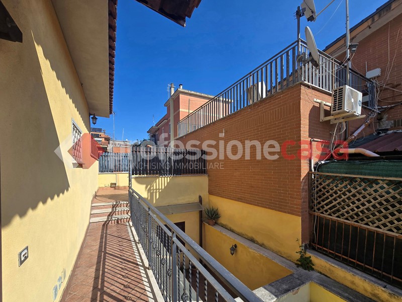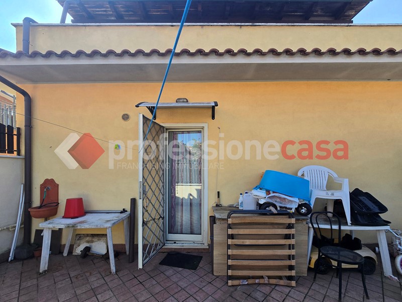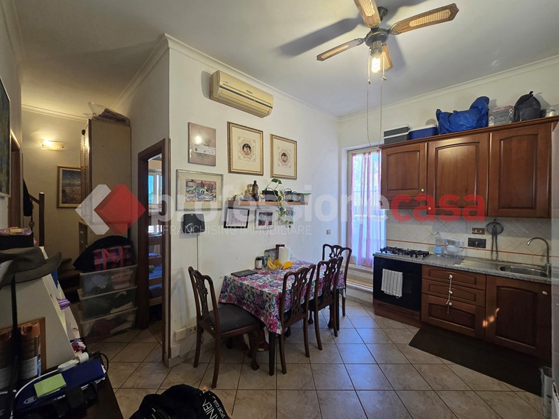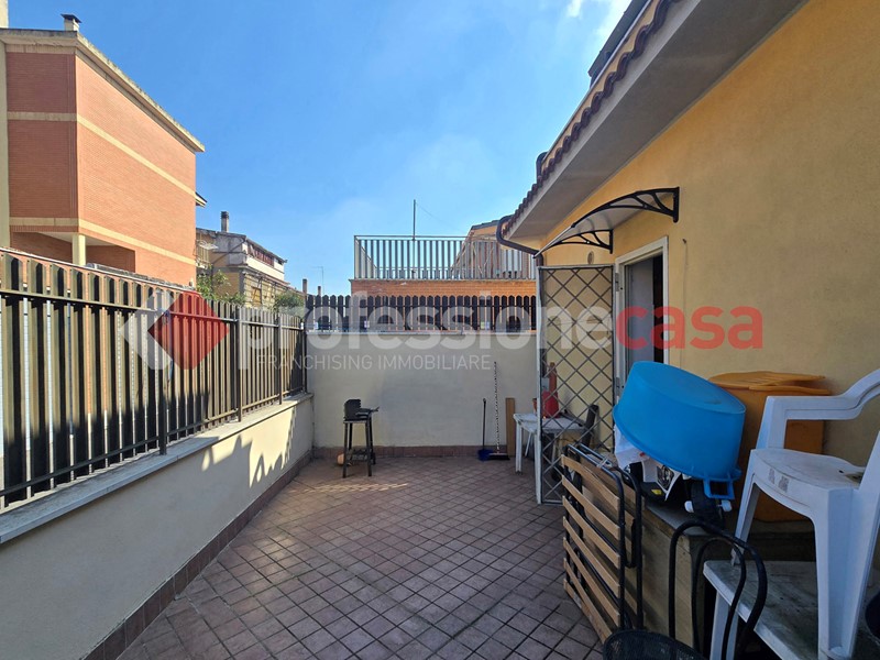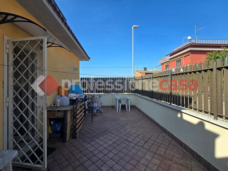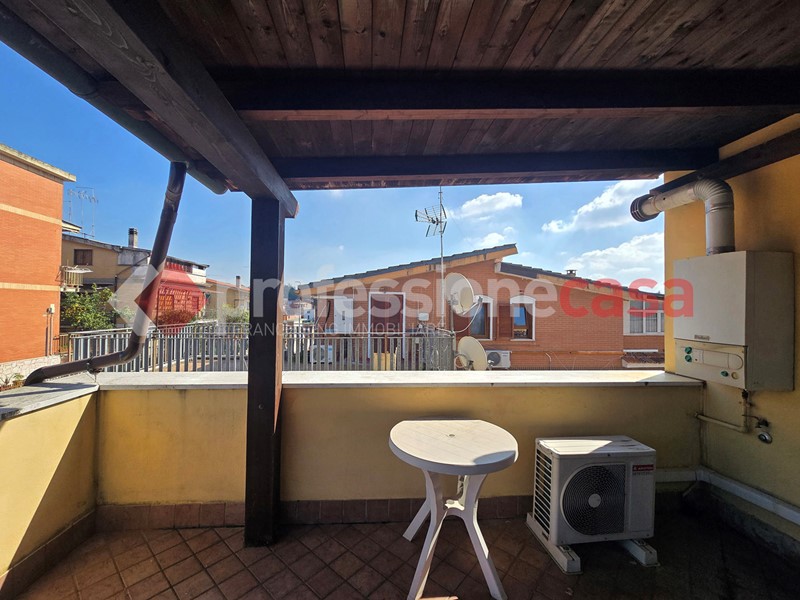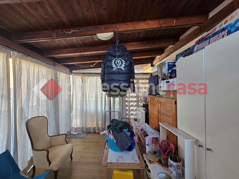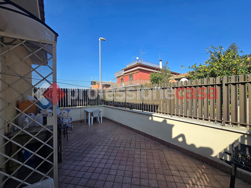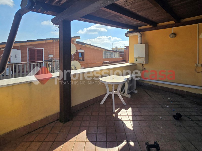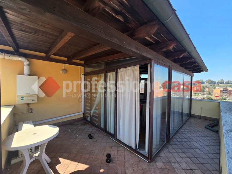 L'appartamento si presenta in buone condizioni conservative, attualmente è composto da: ingresso, cucina, camera, bagno con box doccia e un terrazzo di 25 mq circa; mediante una comoda scala in legno raggiungiamo il piano superiore costituito da una veranda di 12 mq e da un terrazzo di 15 mq circa dal quale si gode un affaccio suggestivo