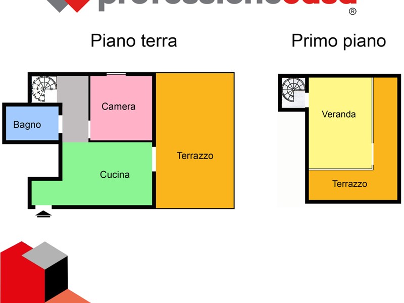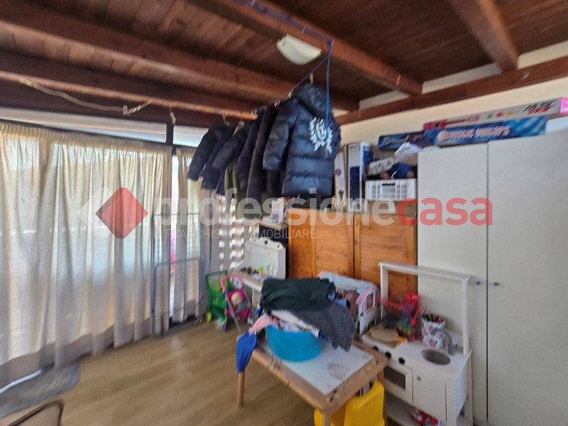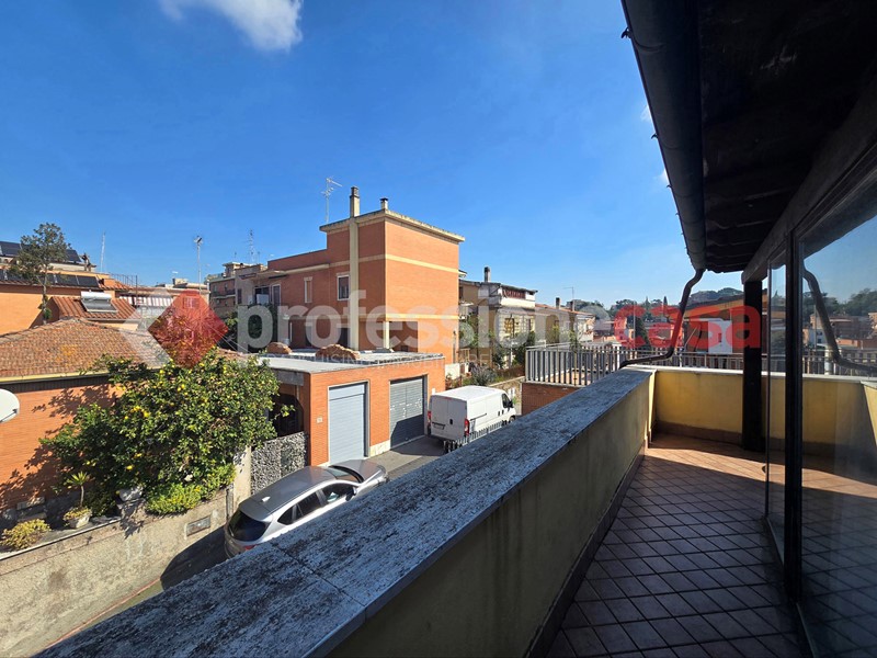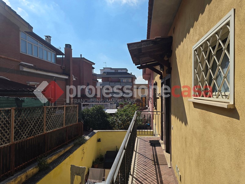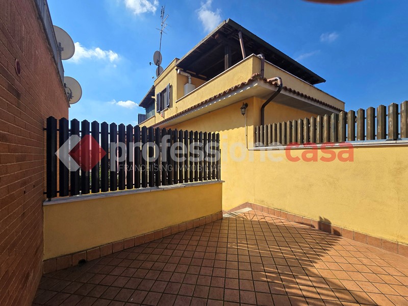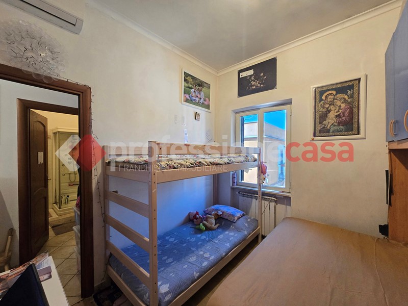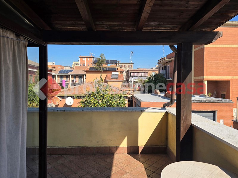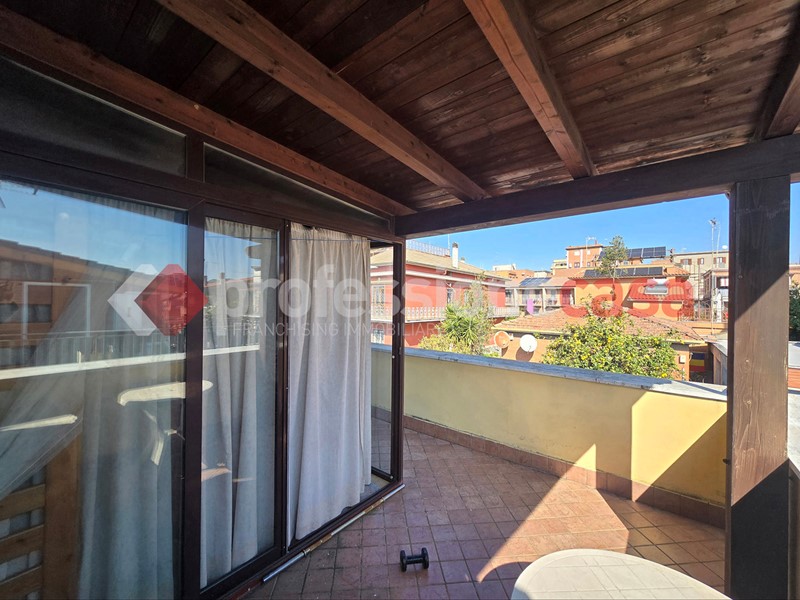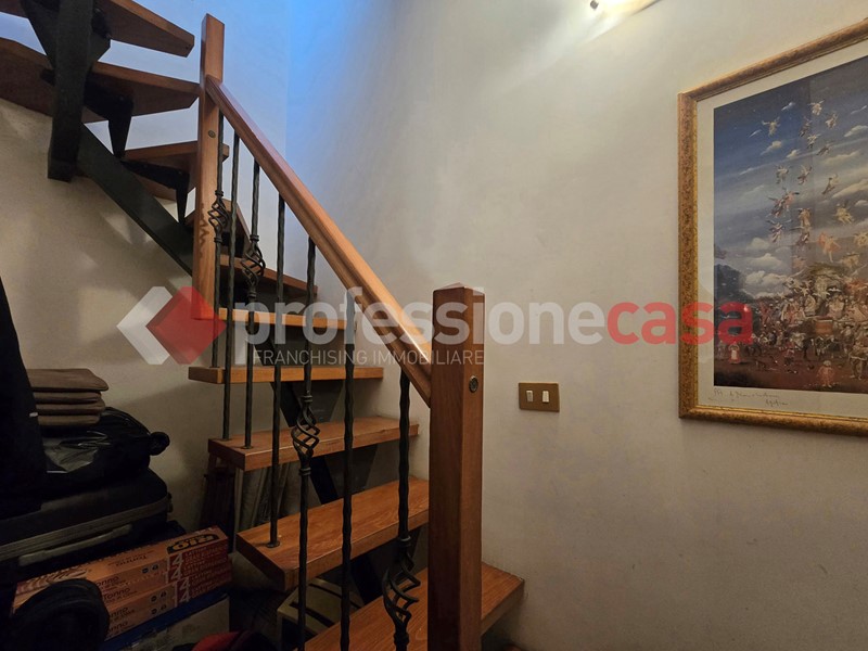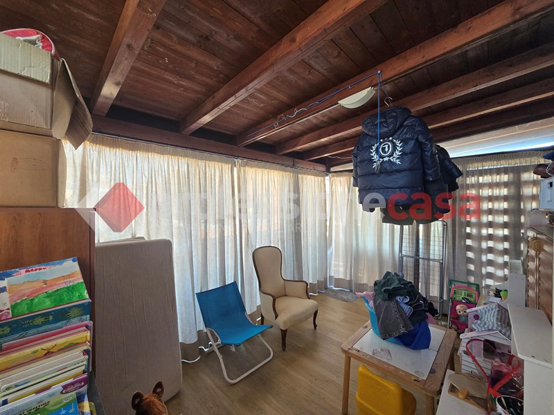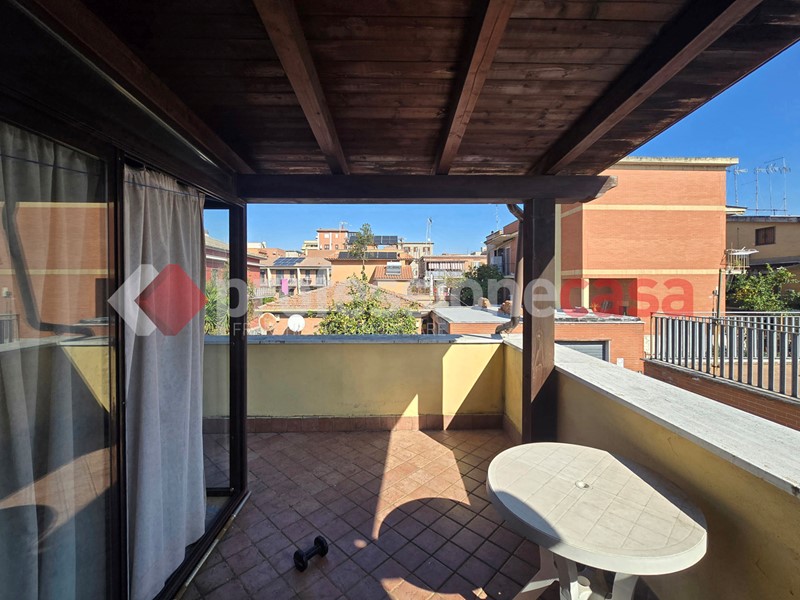 L'appartamento si presenta in buone condizioni conservative, attualmente è composto da: ingresso, cucina, camera, bagno con box doccia e un terrazzo di 25 mq circa; mediante una comoda scala in legno raggiungiamo il piano superiore costituito da una veranda di 12 mq e da un terrazzo di 15 mq circa dal quale si gode un affaccio suggestivo