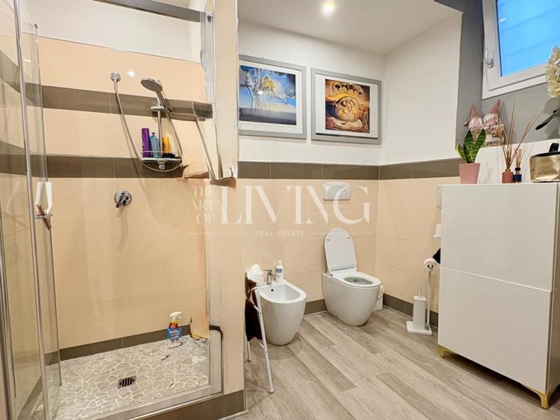La zona notte si compone di 2 camere matrimoniali e 1 singola, una grande sala da bagno con doccia e finestra, un bagno di servizio con doccia, finestra e zona lavanderia. Completa la proprietà graziosa veranda con terrazzino, ideale come studio o zona relax e un comodo ripostiglio situato nel pianerottolo dell'appartamento.