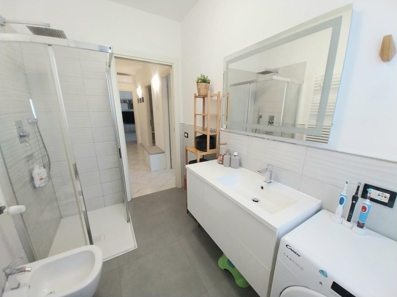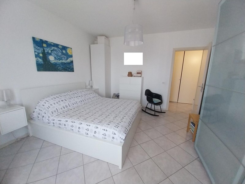 La zona notte accoglie con una camera matrimoniale che si apre su un secondo balcone e una camera media, entrambe silenziose e proporzionate.