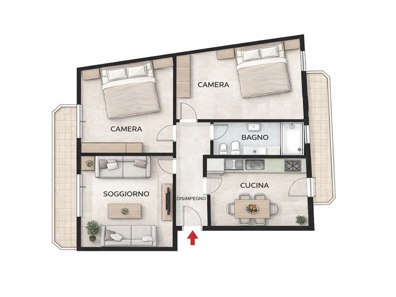 L'appartamento presenta una distribuzione funzionale degli spazi ed è composto da: