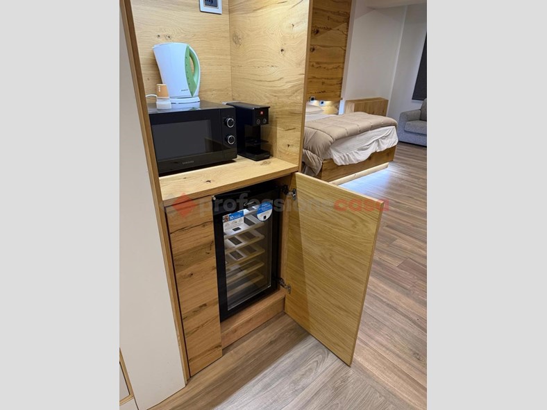 Gli interni si distinguono per rifiniture di alto livello, con falegnameria artigianale su misura realizzata a mano, che conferisce agli ambienti carattere, eleganza e unicità.