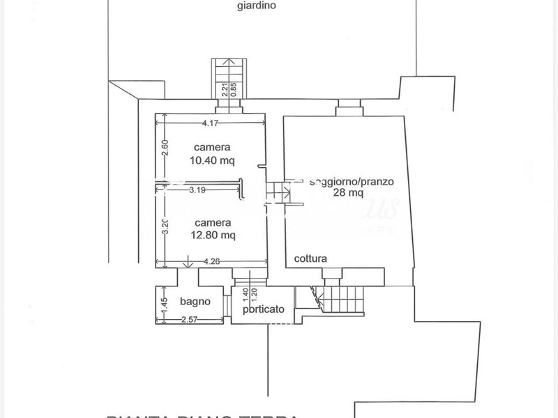 Questo appartamento si trova al piano terra con ingresso indipendente e gode di una splendida esposizione, l'interno è in buono stato e si presta perfettamente sia per chi desidera una casa per le vacanze che per chi cerca una residenza primaria, ed e' cosi' composta soggiorno-cucina, dal quale si accede al giardino privato un' ottima oasi di pace, camera matrimoniale, studio e camera singola, bagno dotato di finestra, piu' stanza multiuso.