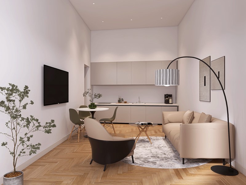 Oltrepassato il portone principale si accederà ad uno spazio comune che condurrà all'ingresso dell'appartamento.
