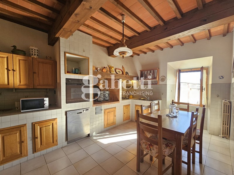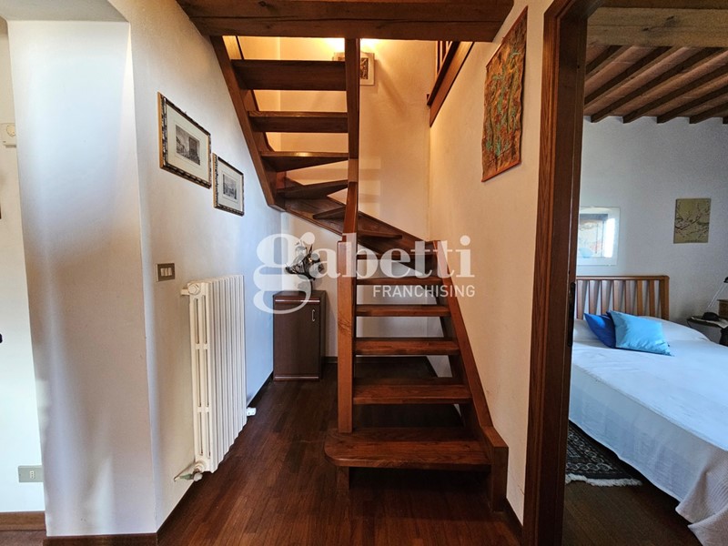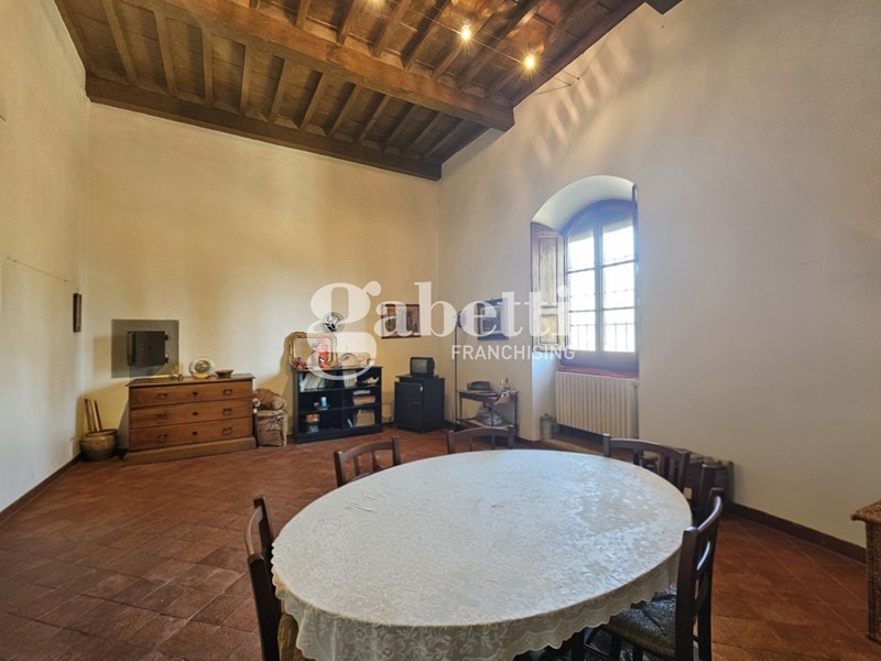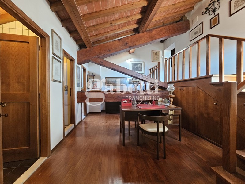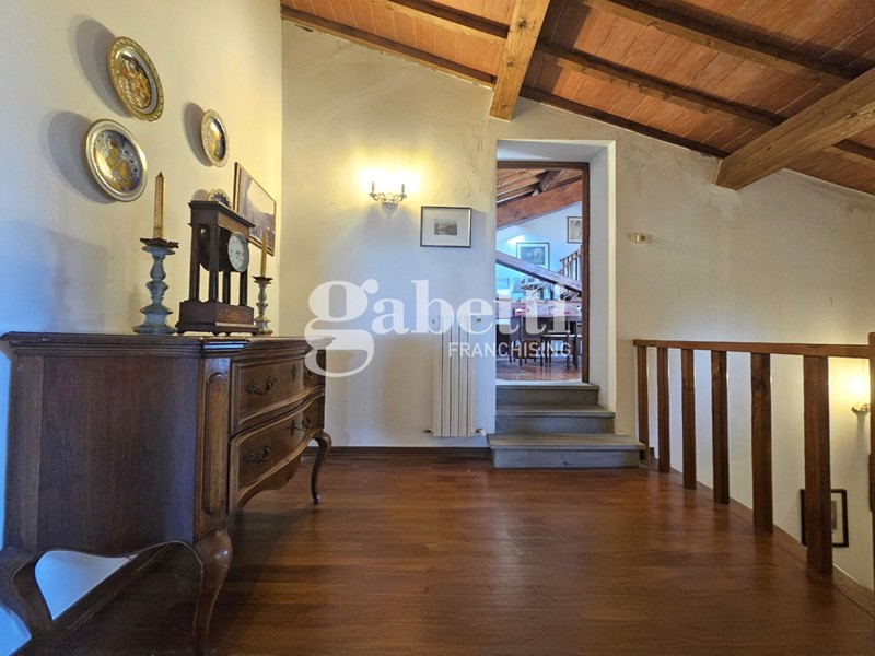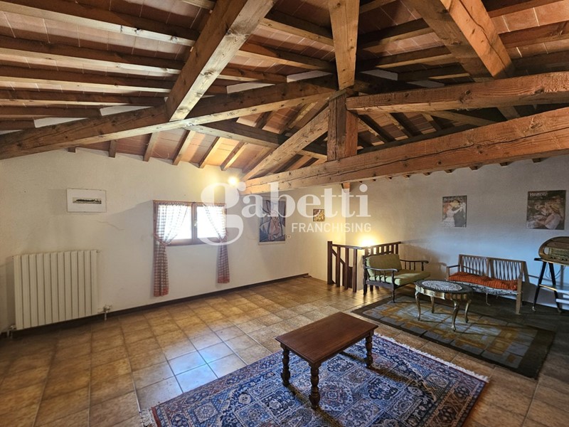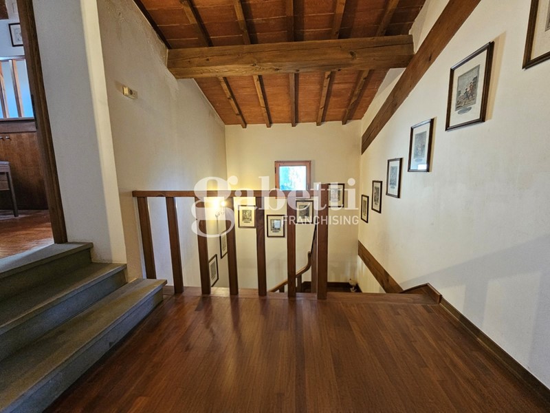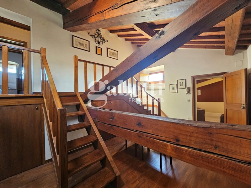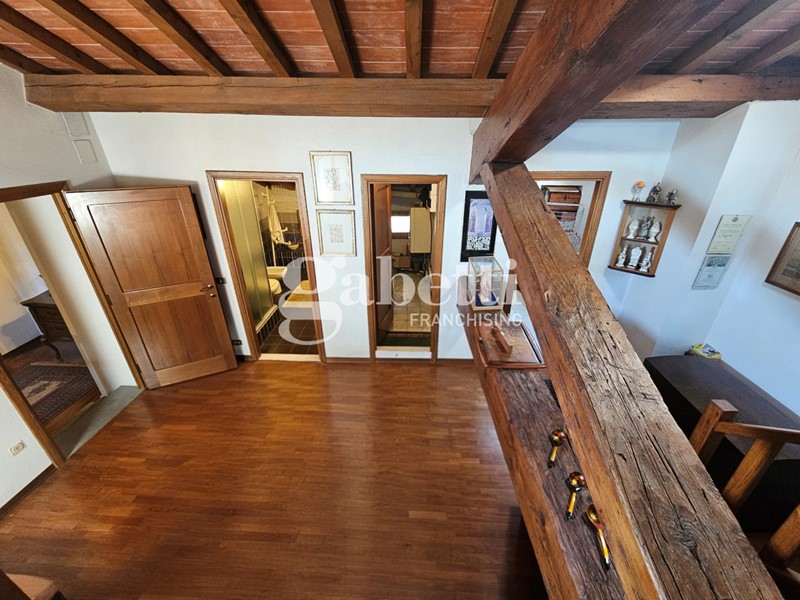 L'immobile conserva il fascino tipico delle dimore storiche con travi a vista, pavimenti in cotto e parquet e scala in legno massello, presentandosi in buone condizioni generali.