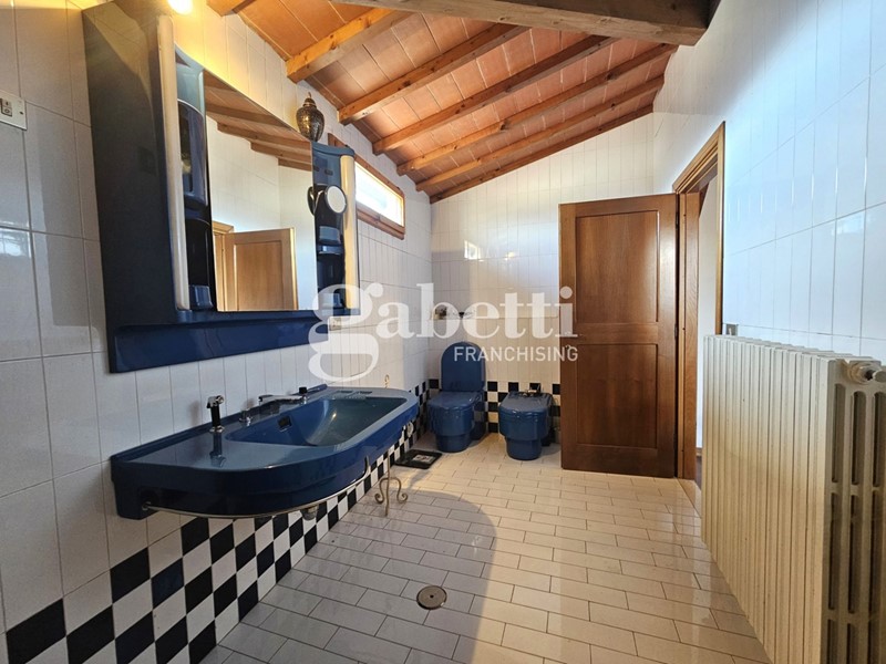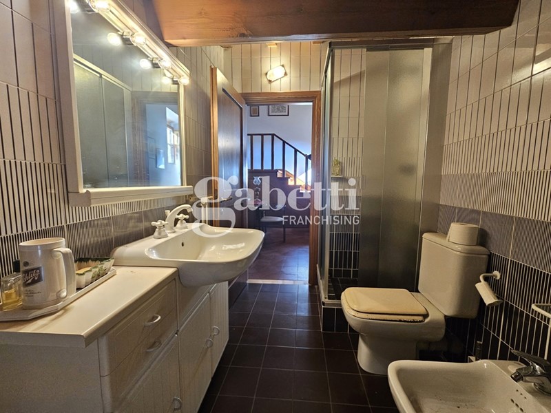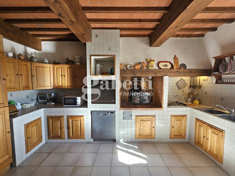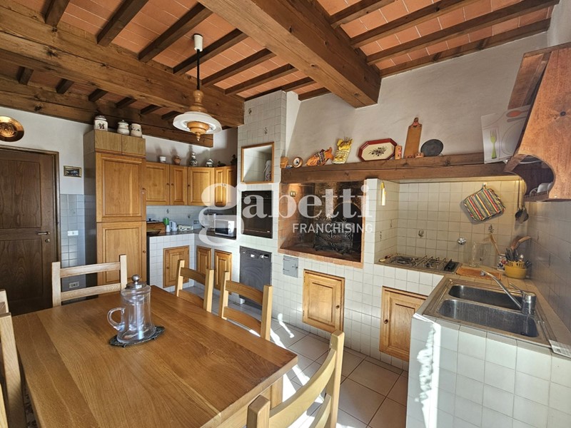 Al primo livello troviamo cucina abitabile in muratura, soggiorno doppio con camino, ulteriore grande sala e bagno finestrato.