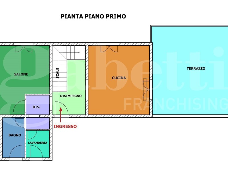 La soluzione si sviluppa su una superficie utile di circa 135 mq e si caratterizza per ambienti ampi, luminosi e ben distribuiti. L'ingresso conduce a un comodo disimpegno che introduce alla zona giorno, composta da spaziosa cucina abitabile con accesso a un ampio terrazzo, in parte coperto, ideale per momenti di relax all'aperto, accogliente salottino, vano lavanderia e servizio finestrato.