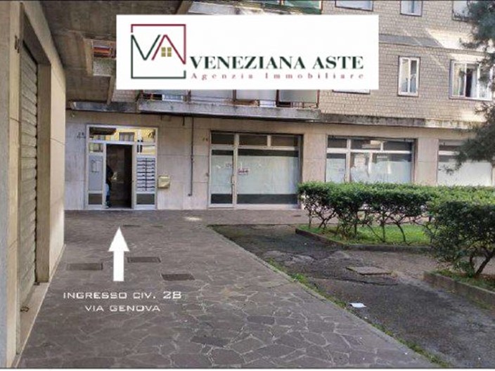 Mestre - Venezia appartamento situato al terzo piano di un condominio dotato di ascensore. L'immobile si trova in via Genova e offre una superficie ben distribuita con cinque locali che comprendono un ingresso, una cucina abitabile con poggiolo, un soggiorno, due camere da letto, un bagno, un ripostiglio e un disimpegno. le condizioni generali dell'immobile richiedono interventi di ristrutturazione. L'appartamento dispone di un garage al piano terra che rappresenta un valore aggiunto per chi necessita di un posto auto sicuro e comodo. La posizione dell'immobile è strategica, situata in una zona ben servita di Mestre, con facile accesso ai principali servizi e collegamenti di trasporto. Questa soluzione abitativa è ideale per chi cerca un appartamento spazioso da personalizzare secondo i propri gusti e necessità.\n\nImmobile posto in vendita dal Tribunale. Vieni a scoprire come acquistare prima dell'asta. Annuncio finalizzato alla vendita del servizio di assistenza per un acquisto sicuro e conveniente.