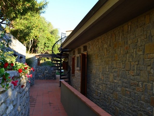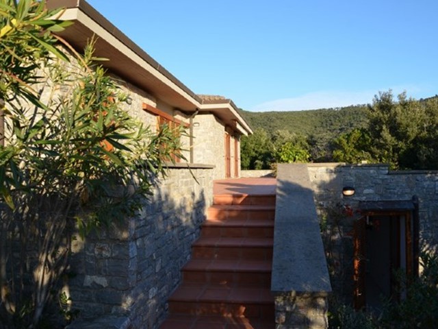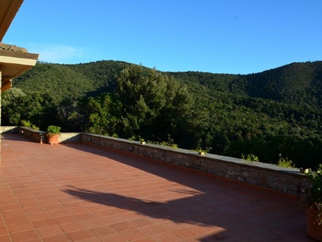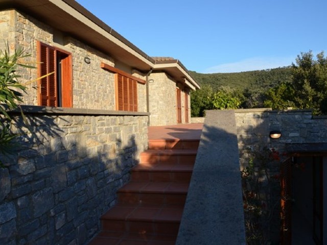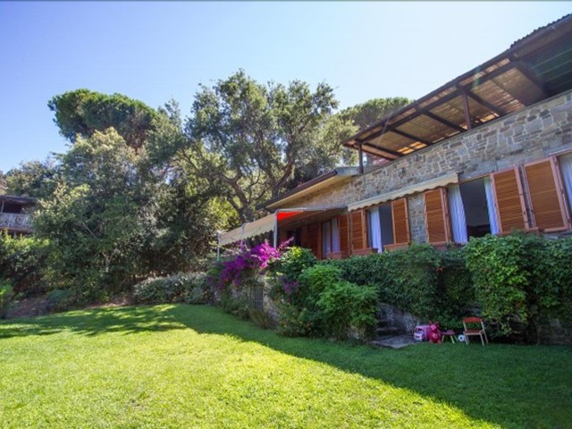 Villa con bellissima vista mare e grande giardino a confine con il campo da Golf. La proprietà si sviluppa su 2 livelli. Al piano terra grande soggiorno e cucina, 3 camere doppie, 2 bagni, 1 cameretta di servizio con bagno. Al primo piano 2 camere matrimoniali ciascuna con il suo bagno, salotto e grande terrazza con fantastica vista mare .La villa è costruita su un doppio lotto di terreno per cui ha un giardino molto grande e gode di una inviadiabile privacy, il giardino arriva a confinare con il campo da Golf. Parcheggio privato per 3 auto. \nCat.A/7\nr.c. and euro; 4228 - Maggiori Dettagli: palchetto incollato, giardino privato, caminetto, doppi vetri, parabola satellitare, posto auto, riscaldamento autonomo, vista collina, parcheggio, Porta blindata, Cucina Abitabile, Vista Panoramica, Vista Mare, terrazzo, impianto allarme