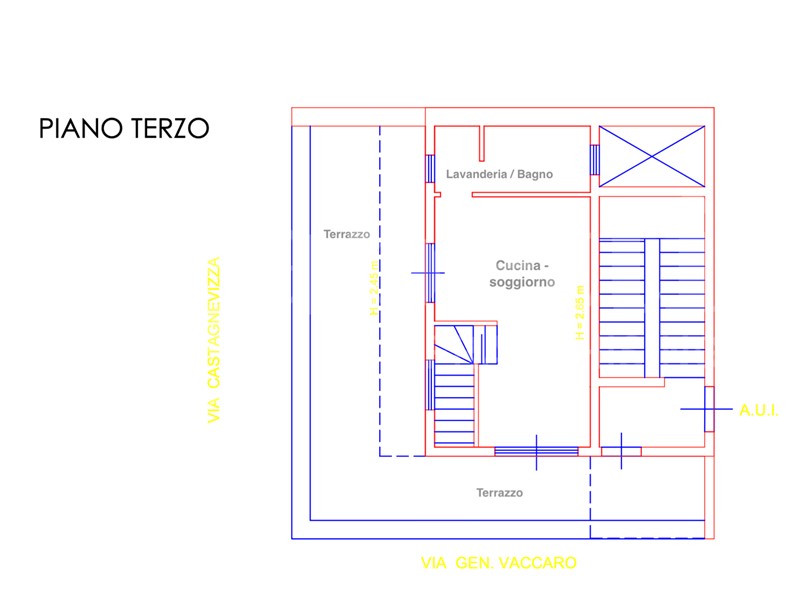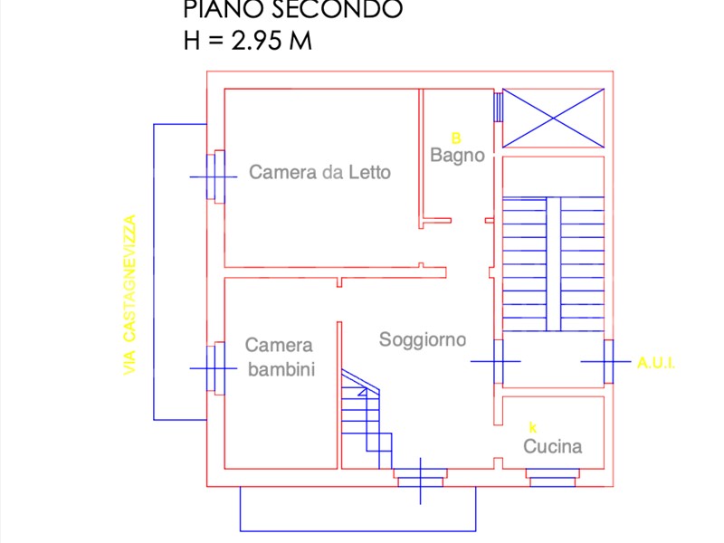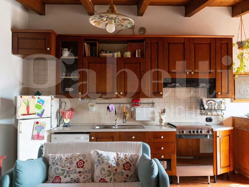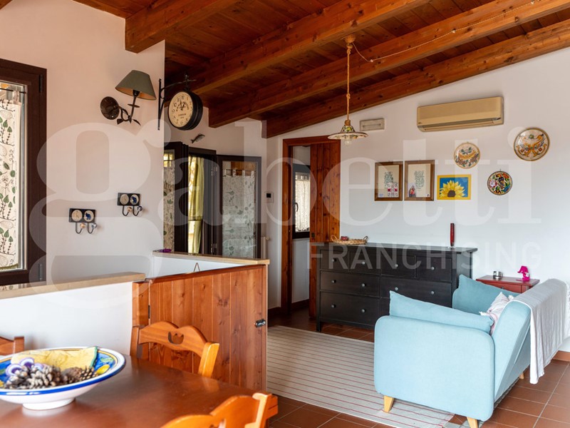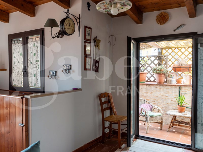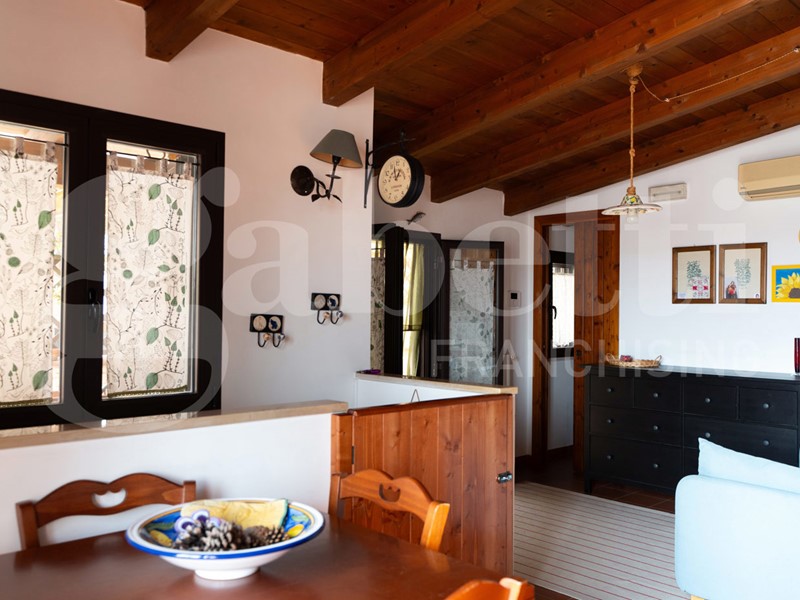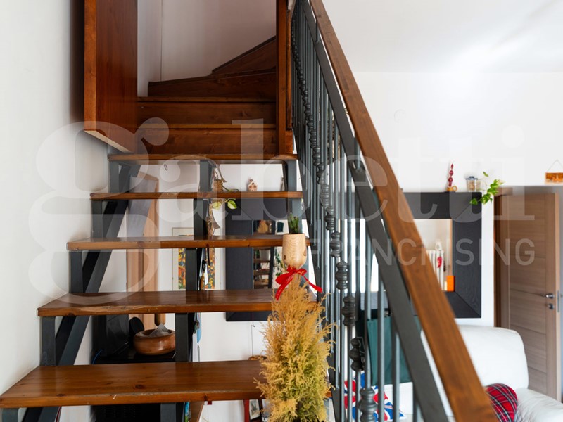 Al primo livello: soggiorno, due camere, cucinino, bagno, balcone e scalinata interna.