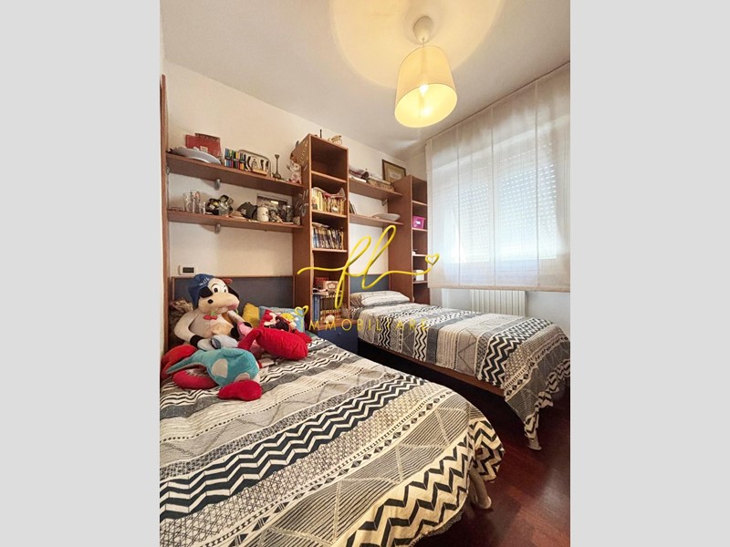 La zona notte, ben separata da un disimpegno, offre una camera matrimoniale, una camera singola e un bagno finestrato con doccia, funzionale e luminoso.